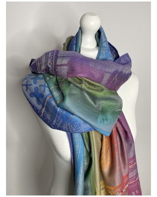 Women's Multicoloured Rainbow Eagle Print Embroidered Tassel Fringe Wrap Scarf