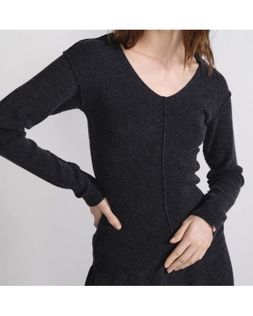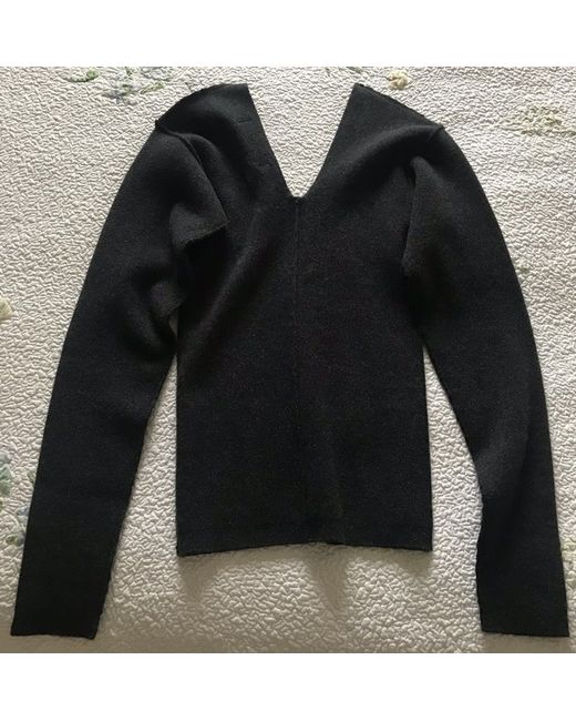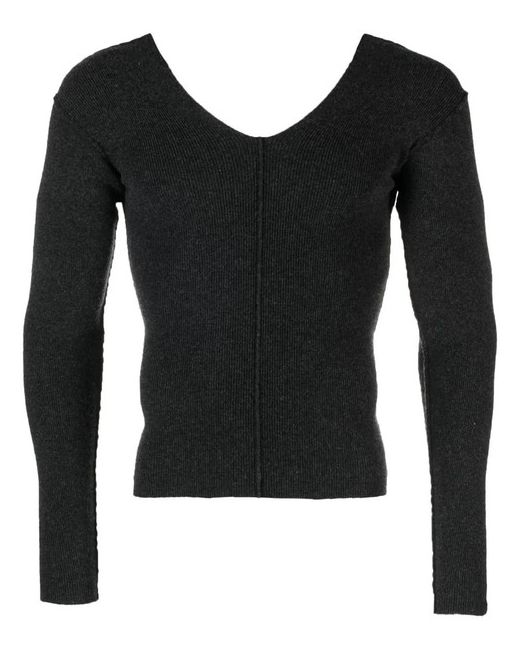 This long-sleeved jumper with V-neck in the front as well as in the back is an absolute must-have. This one-size jumper, designed for unisex adults, features a classic long-sleeve silhouette and a sophisticated pullover closure, perfect for casual outings.