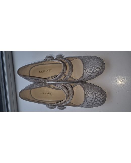 Gorgeous light blue/grey colour. Nine West court heels with embroidered detail. Worn once as bridesmaid shoes. Very comfortable