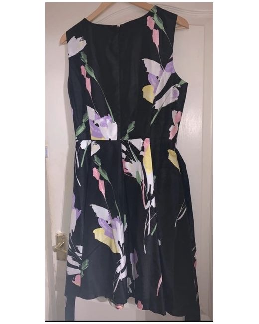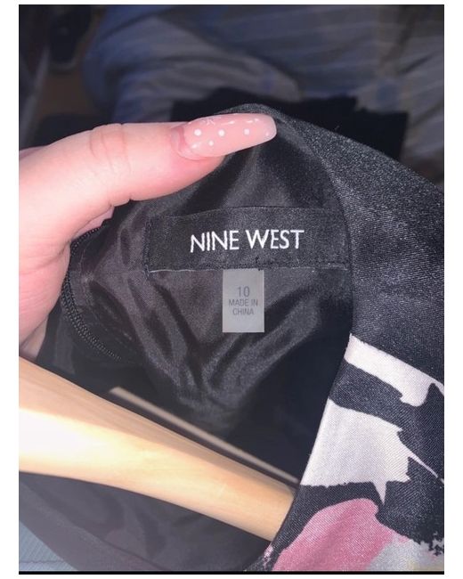 Nine West dress size 10. Black with almost pastel flower detail. Come with tie and loops around the waist, zipped back.