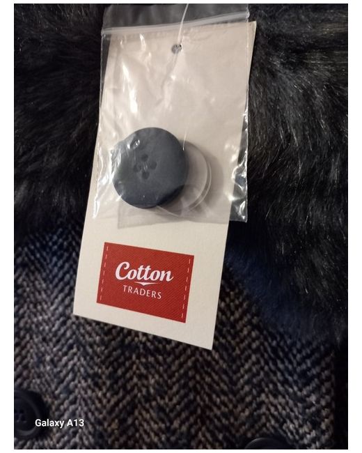 This is a new with tags woman's coat in size 16 by Cotton Traders. The coat is made of polyester, acrylic, and wool tweed in brown/navy colours. It is mid-length with a button closure, lined with polyester. The coat features a faux fur collar which is removable, and pockets, suitable for winter and autumn seasons. It is an overcoat style for women. Length 34".