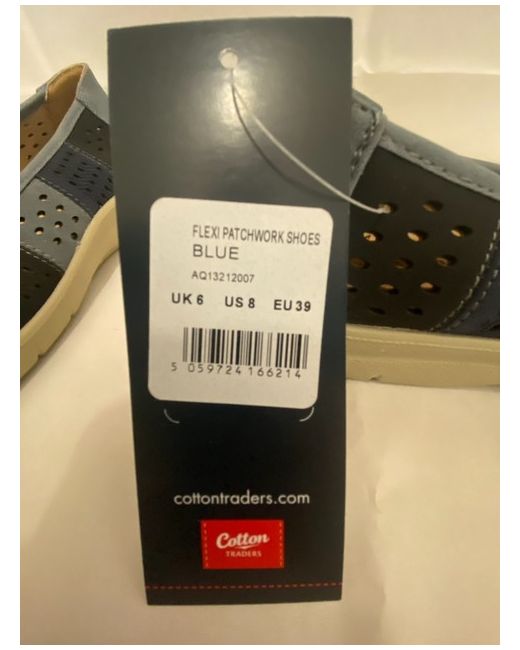 Blue mix Flexi Patchwork shoes, lightweight, comfortable and durable. Lovely Cotton Traders shoes. Size 6, (39).
