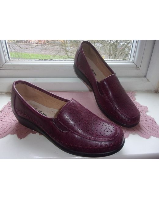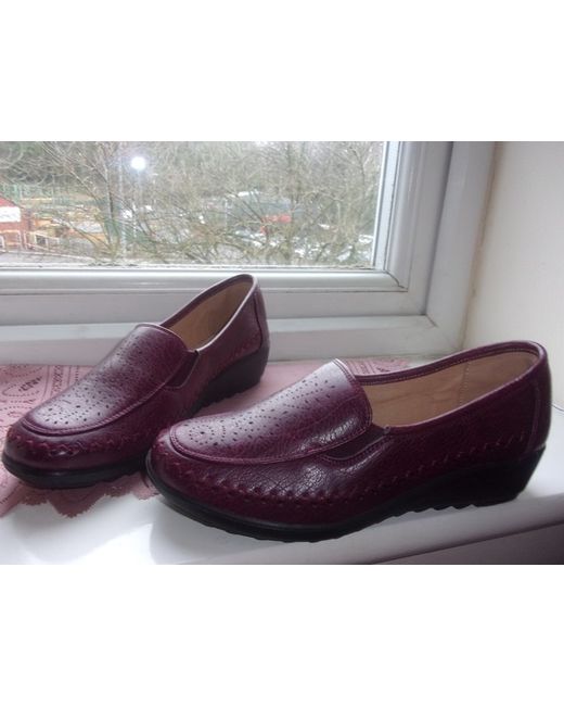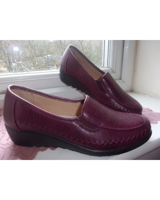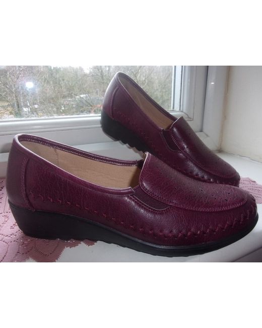 Cotton Traders. Attractive & Comfortable Ribbed Wedge Burgundy Shoes. Their wedge has a ribbed edge. The wedge of the shoes is approx. An attractive and comfortable pair of shoes for your easy walk.