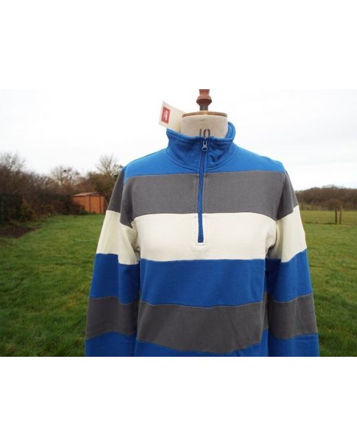 Loopback Stripe Half Zip Pull On Sweat Top. COTTON TRADERS. XS Bust 36”. This easy to wear top pulls on, has a half zip front, stand up collar and long sleeves with a ribbed cuff and hem. The material is 100% cotton and machine washable.