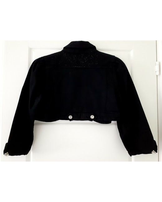 Jane Norman Unusual Cropped Black Embellished Jacket decorated with black studs on lapels, pockets and top back sections. Mid sleeves. Each cuff is decorated with a clear fastening button. Absolutely stunning Size 14 Brand New Never worn