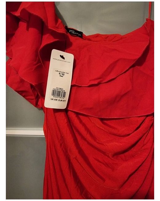 This is a stylish Jane Norman dress in size 6, featuring a sleeveless design with a long length. Perfect for formal occasions like weddings, parties, or business events. The dress is a striking red colour, ideal for making a statement. brand new with tags