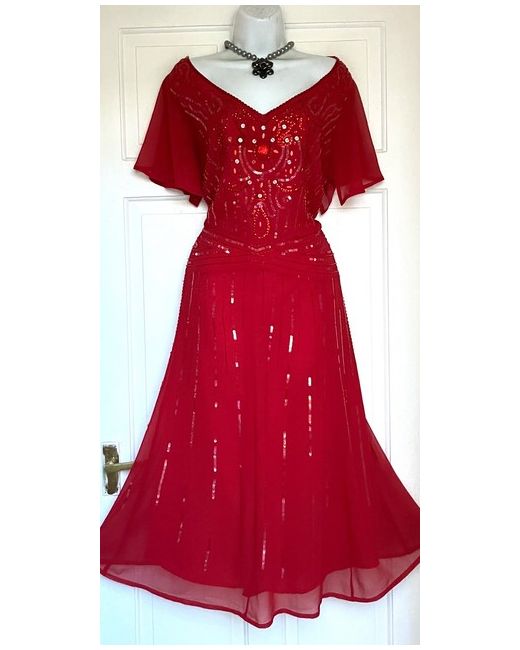 This red midi dress by Changes by Together in excellent condition. The dress, in size 20, exudes a 20s Gatsby style and is suitable for all seasons.