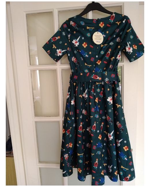 Lindy Bop Dress Maisey size 8 brand new. Rare Lindy Bop dress ,style Maisey,with belt and lined torso,two skirt pockets. Please,see photos for measurements,sold as seen.Smoke and pet free home.Thank you for looking.