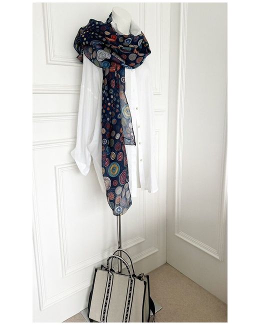 Ladies Bright Arty Abstract Marine Print Long Neck Large Shawl Womans Scarf