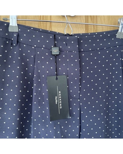 Max Mara Weekend Blue Stretch Slim Cigarette Trousers UK 12 Star New Tags Amazing trousers Pleated front Waist 32 inches Inside leg 28 inches New with tags Blue trousers and white stars Box 2