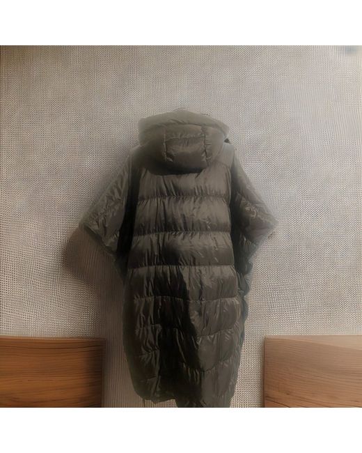 Max Mara cube cape jacket, there are many shorter versions but the is the longer length, great if your in the go with unpredictable weather, we wear over over jackets /work suits Perfect, no defects, tried on only when purchased The cube is lightly quilted Relaxed fit, high neck, drawstring hood, short sleeves, two welt pockets at front, all-over padded c metal popper fastenings down either side, fully lined, drawstring cuffs and hems Size Medium equiv to a UK12, due to the style I’ve given the dimensions in the photos, please view Back length 42” Across the back shoulder 40” Some would class as oversized fit but in essence it’s the style.
