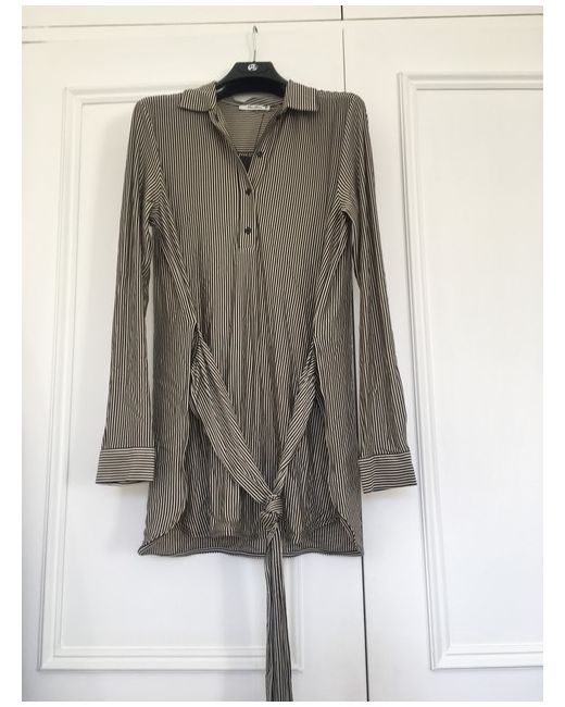 long viscose blouse with undetachable fabric belt. You can tie it in front and at the back. As it’s viscose it’s quite stretchy. Please look at my other items Wore it twice