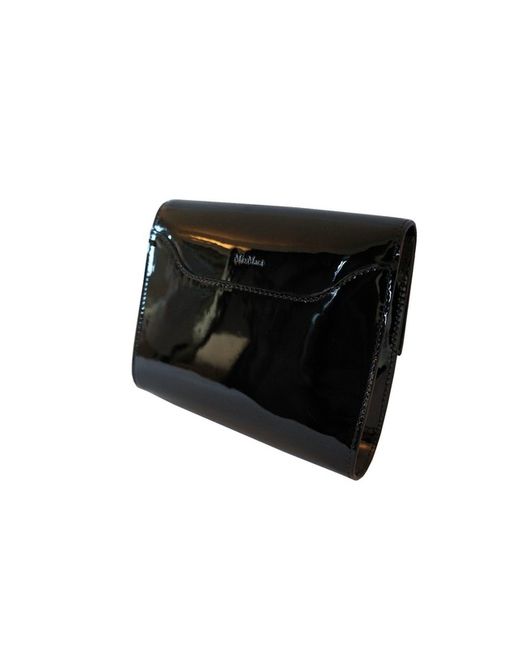 Max Mara black patent leather shoulder bag with removable shoulder chain. Max Mara Logo on rear. Fabric lining personalised with Max Mara logo. Glitter effect Patent Leather. Shoulder bag. Removable shoulder chain.