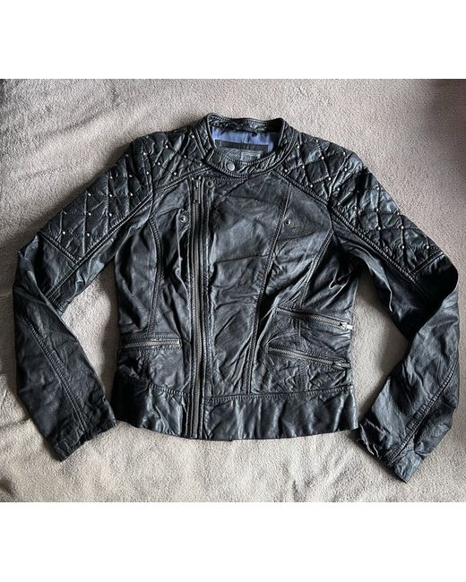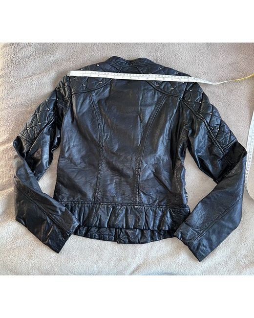 Y2K sizing runs smaller, would be suitable for UK 8 and a neat UK 10. Sold as seen. Fully lined with a blue printed Firetrap satin fabric. Slim fitting. Made of 100% black matte leather, with a slight distressed washed feel.