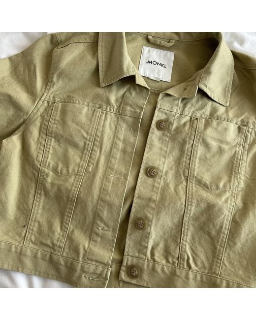 This Monki denim jacket is a must-have for any fashion-forward woman. The cropped length and green colour make it a statement piece, while the cotton outer shell ensures comfort and durability. The jacket is suitable for regular-sized women and is a size small. With its stylish and trendy design, this denim jacket is perfect for any occasion, whether it's a casual day out or a night on the town. The jacket is branded with Monki, a fashionable and reliable name in the industry. Add this denim jacket to your wardrobe today and elevate your style game.