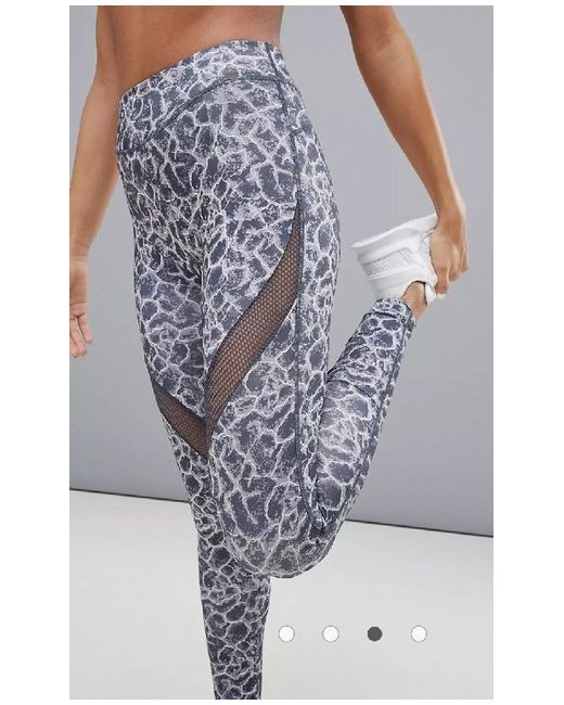 Women's Gray Ladies Grey White Patterned Mesh Leggings Gym Active UK S