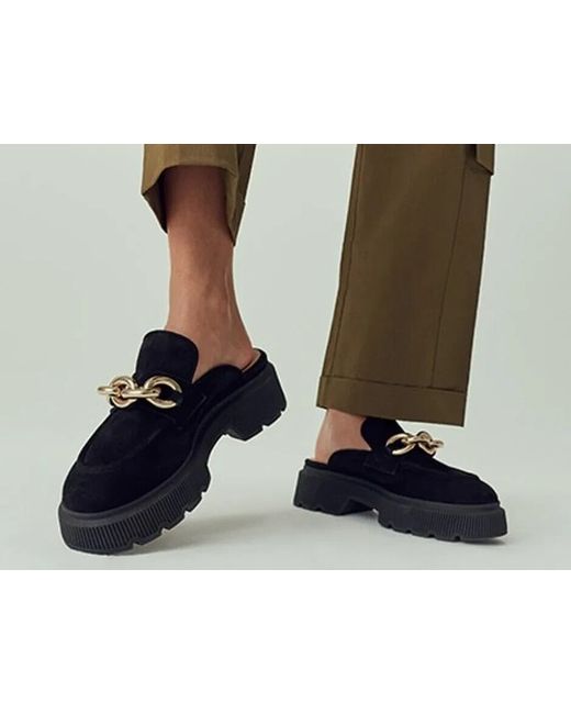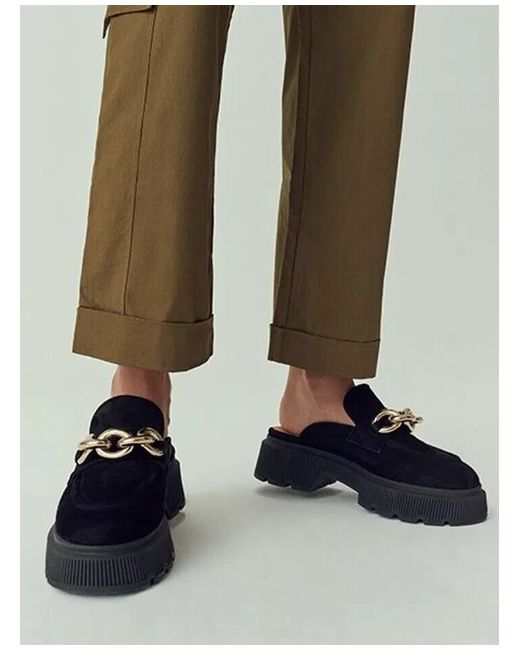 Women's Black RINGBACK Suede Chunky Backless Loafer EU 36 UK 3