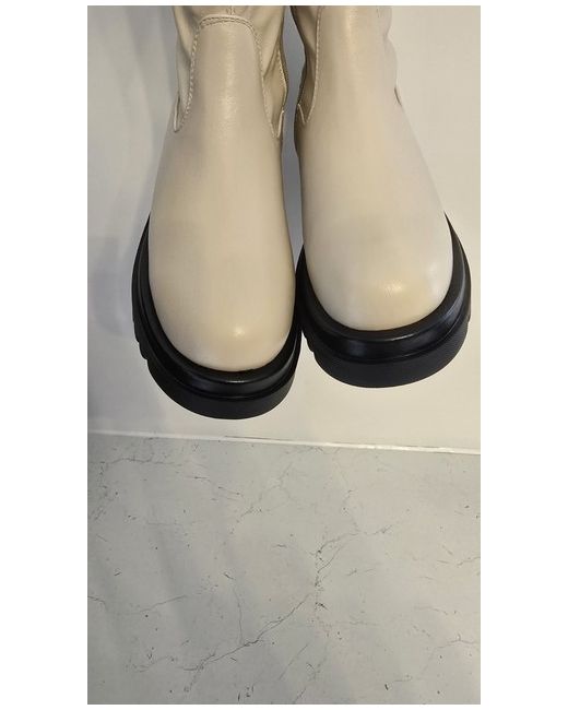 Women's White Off Chunky Platform Socks Over Knee-length Zip-up Boots Uk 6.5/7 New