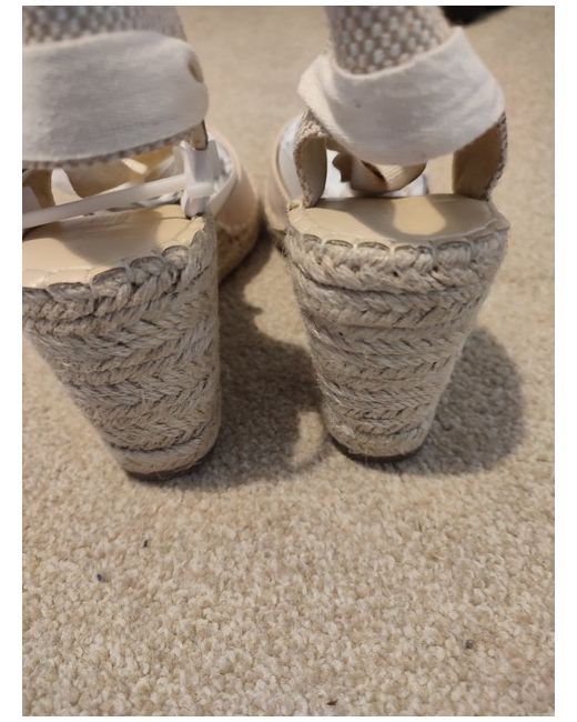 Truffle Collection nude sandals with a wedge rope heel. Size 7 Straps to tie around the leg. 3.5 inch heels.