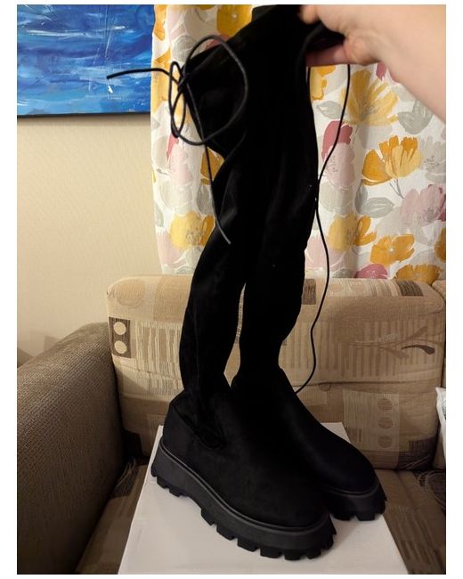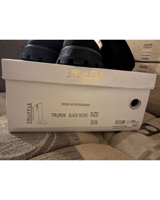 These knee-high boots by Truffle Collection are designed for women in a stylish sock style. They feature a faux suede upper material in a classic black colour, making them a versatile and chic addition to any outfit. With a UK shoe size of 6, these knee-high boots are perfect for adding a touch of sophistication to your wardrobe. Ideal for various occasions, these boots offer both style and comfort for the modern woman. Please note they feel more like size 5 as are very tight fitting. Box for boots is damaged.