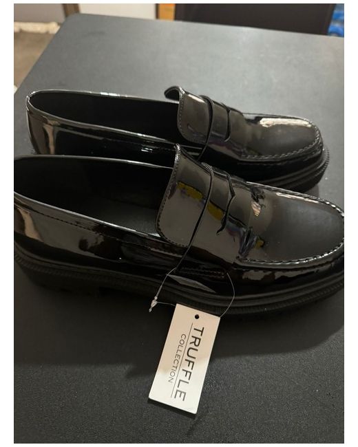 Elevate your shoe game with these stunning Truffle Collection heels in classic black. Crafted from high-quality faux leather, these shoes are both stylish and comfortable. Perfect for any occasion, they feature a sleek heeled design that will add a touch of sophistication to any outfit. With a UK shoe size of 7, these shoes are the perfect addition to any woman's wardrobe. The Truffle Collection brand is known for its high-quality footwear, and these heels are no exception. Whether you're dressing up for a night out or just running errands, these shoes are sure to turn heads.