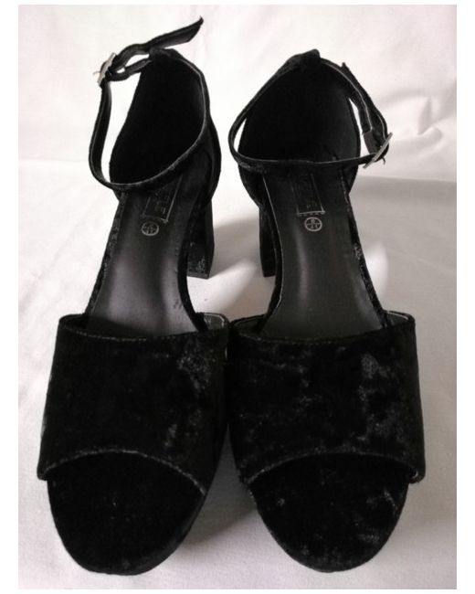 Truffle Collection - Black Velour open toe D'Orsay Platform Shoes. 1.5" Platform to toe & 3" Block Heel.