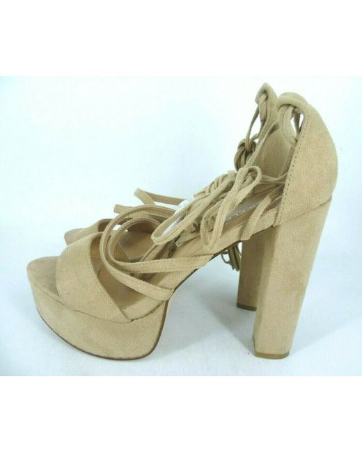 Truffle Collection Platform Ankle Strap Sandals Beige. ankle tie fastening with tassle. UK 8 EU 41.