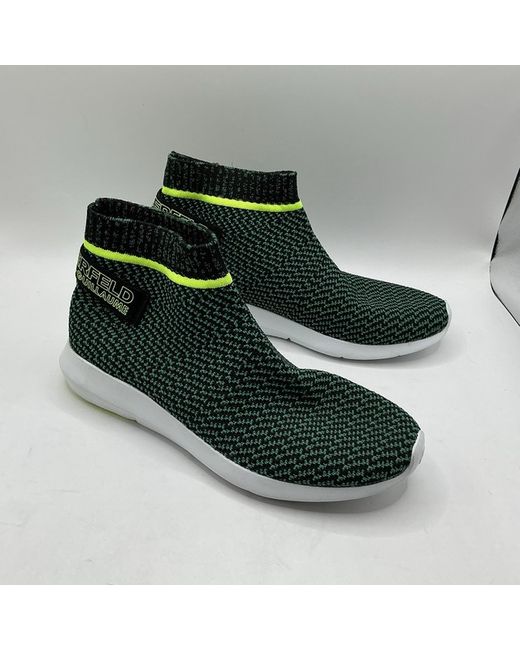 Karl Lagerfeld trainers in size 4 for women. These sock trainers are styled as sneakers in a sleek black and green colour combination. Please note that these are ex display and have our suppliers code on the sole, please see photos