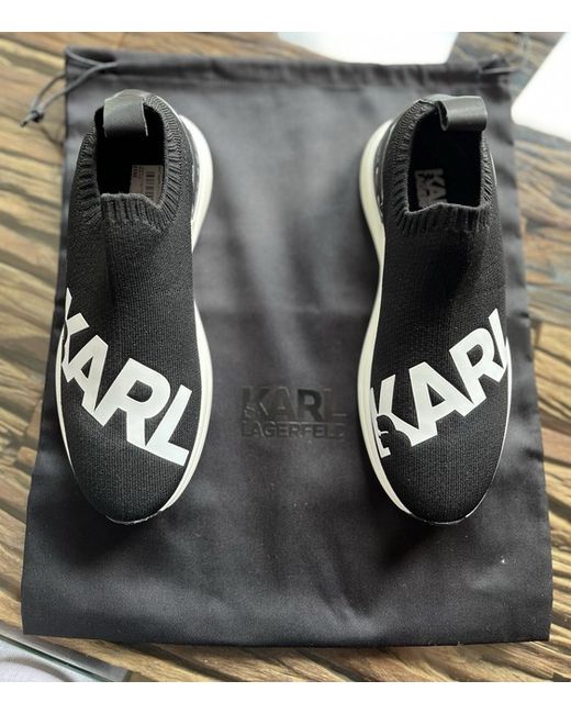 These Karl Lagerfeld trainers in size 4 are a stylish choice for women. The sleek black knit textile upper material gives them a modern look, while the Karl logo adds a touch of designer flair. These sneakers are part of the Karl Lagerfeld product line, showcasing the brand's signature style. Perfect for casual wear, these trainers are a fashionable and comfortable addition to any outfit. NB the box has some slight marks on but trainers have never been worn and are in perfect condition.