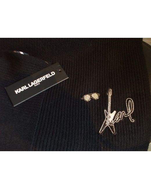 KARL LAGERFELD Black with sunglasses and embroidered guitar detail. 71" / 180cm x 14" / 36cm (approx.).