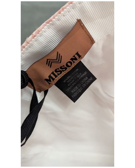 Elevate your accessory game with this striking Missoni baseball cap, a piece that marries iconic style with casual comfort. Featuring the brand's signature chevron pattern in a delightful rose pink hue, it's a versatile addition to any wardrobe. The cap is crafted from a blend of acrylic, polyester, and silk, ensuring both durability and a luxurious feel. The hat offers an adjustable fit, making it suitable for a variety of head sizes and perfect for any casual occasion. Its designer theme is evident in the distinct zig zag accents, ensuring this cap is not just a practical item but a statement piece that complements your spring through to winter outfits seamlessly.