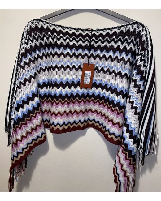 MISSONI Multicoloured Zigzag Chevron V Neck Poncho Wool Blend One Size New.