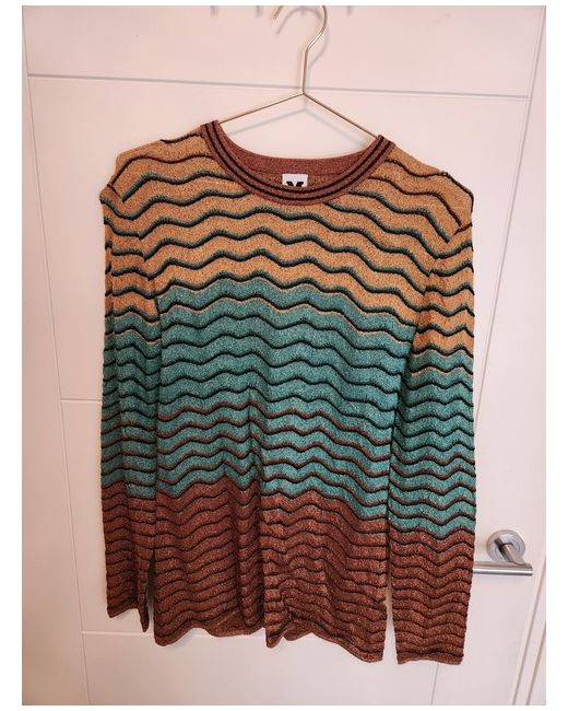 Add a touch of luxury to your wardrobe with this beautiful Missoni top. The multicoloured blouse is made from high-quality viscose, making it comfortable and durable. The long sleeves and round neckline provide a classic look, while the tunic style adds a modern twist. This versatile top is perfect for any occasion, whether you're dressing up for a night out or keeping it casual during the day. The Missoni brand is known for its quality and style, and this blouse is no exception. Available in size L, this top is a must-have for any fashion-forward woman.