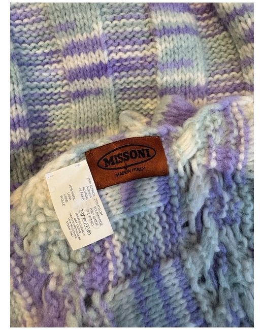 Missoni chunky knit scarf in pale green and lavender purple. Alpaca / wool mix. Luxuriously soft and thick, this would make a stylish addition to your winter wardrobe!