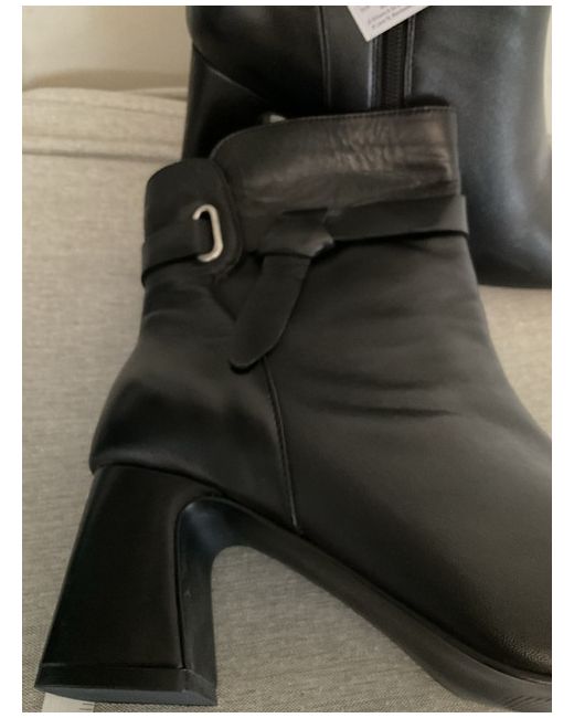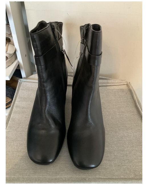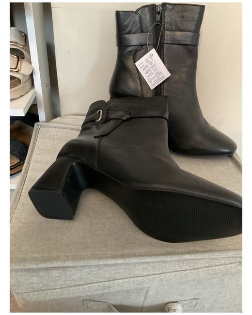 These black leather ankle boots by JD Williams are a UK size 5 with a round toe and zip closure. They have a high block heel (7.6-10 cm) and are suitable for casual occasions. The boots feature a stylish design and are branded as JD Williams. Additionally, they are made of leather and are in a wide fit size 5EEE.