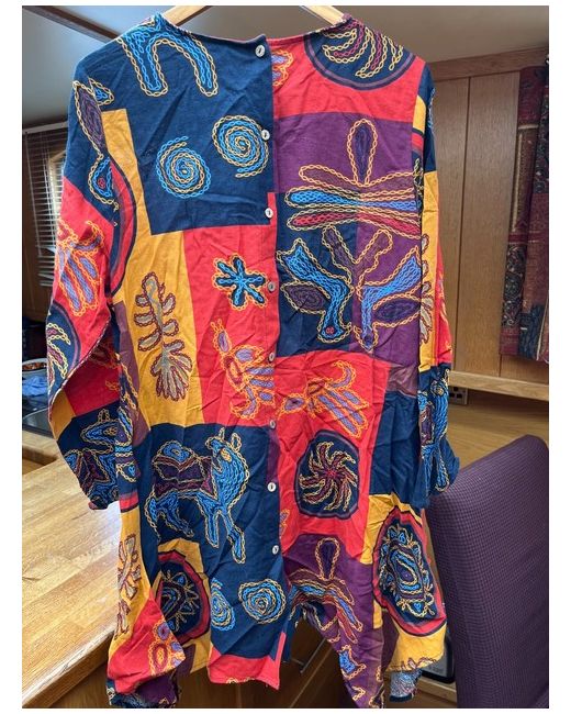 Introducing the Gracila tunic/top, a stunning addition to any woman's wardrobe. This top features a vibrant multicoloured design, perfect for adding a pop of colour to any outfit. The long sleeves and handkerchief hem add a touch of elegance and sophistication, making it suitable for both casual and formal occasions. Crafted with high-quality materials, this top is available in size 18 and is perfect for women who appreciate comfortable and stylish clothing.