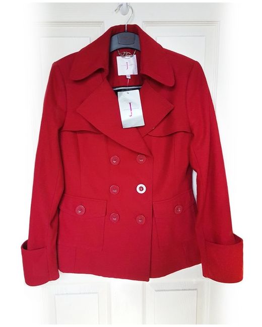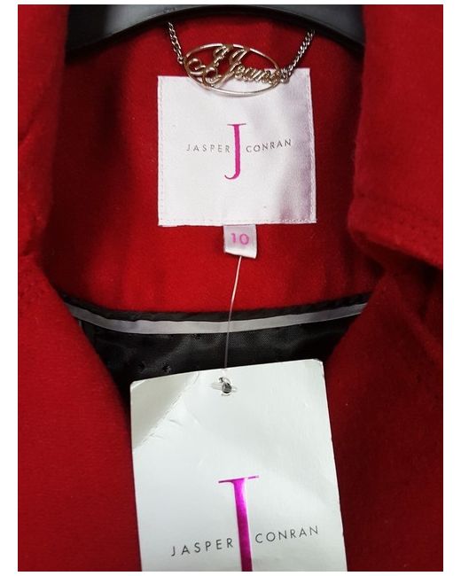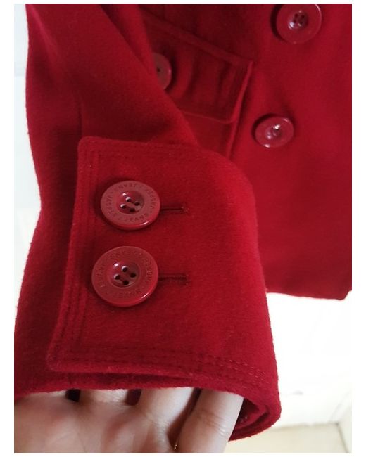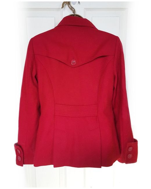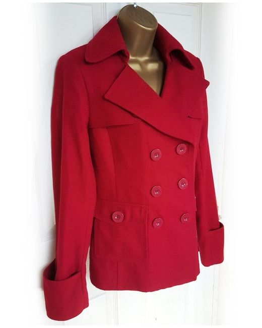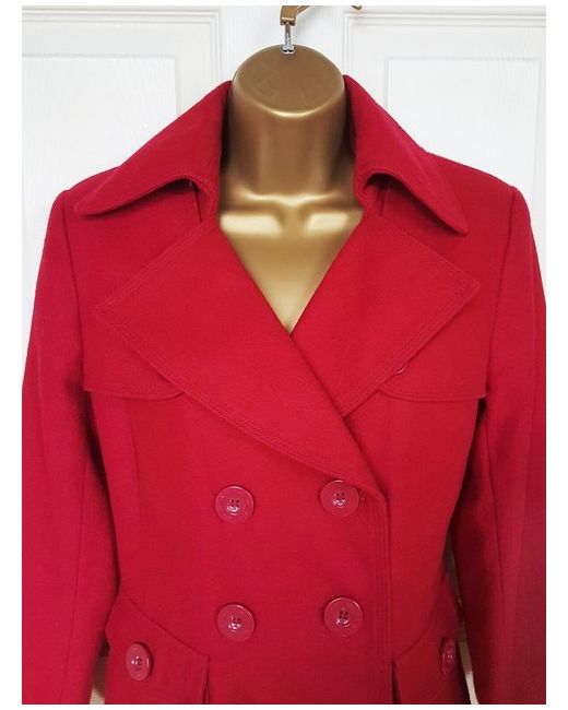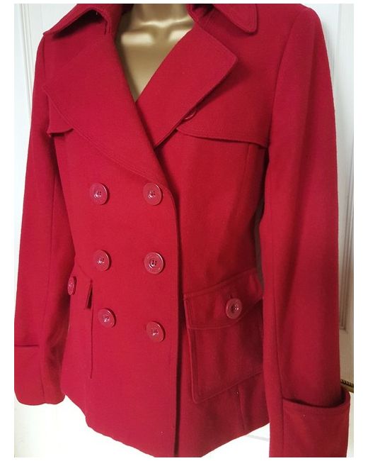 A fabulous doubled breasted woollen coat from Jasper Conran in a lush crimson red shade. The collar lapels and cuffs are beautifully structured and crisp and provide a good shape to the coat. Very lovely and flattering, and most importantly - Warm!