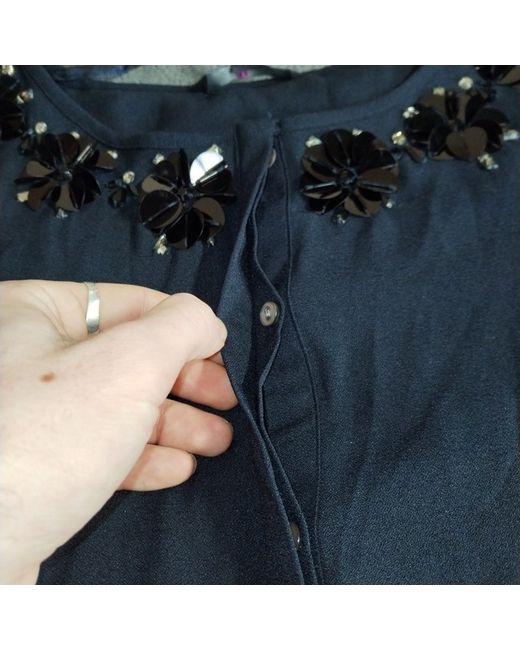 Black Blouse Top 14 Embellished Button Chiffon Sequin RRP 55