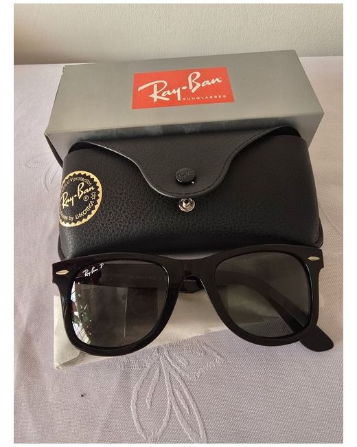 Explore the timeless appeal of the Ray-Ban Wayfarer sunglasses, a perfect blend of style and functionality for any adult. These iconic sunglasses feature a classic black plastic frame complemented by green polarised lenses, designed to reduce glare and enhance visual clarity while offering 100% UV400 protection. The unisex Wayfarer style lends a versatile look that suits various face shapes and outfits, making it an essential accessory for your wardrobe. Crafted with Ray-Ban's commitment to quality, these sunglasses promise both durability and comfort for everyday wear.