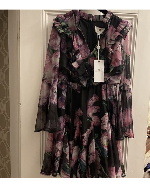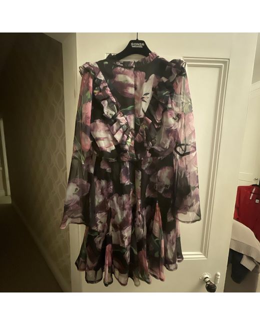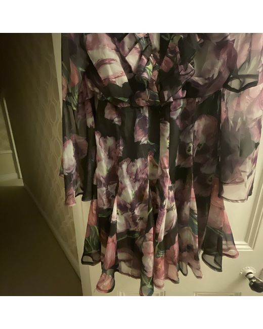 Purple tulip print dress with long flowing sleeves. Still has tags on and has never been worn