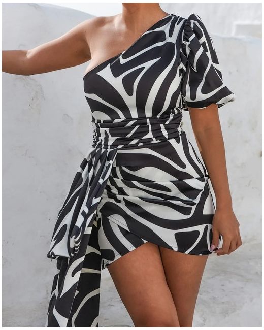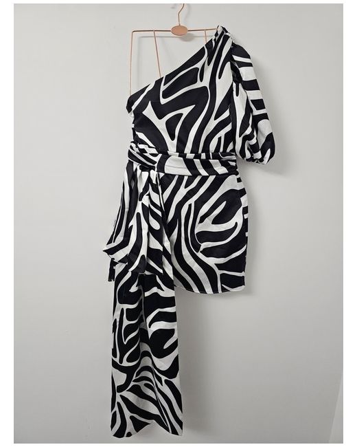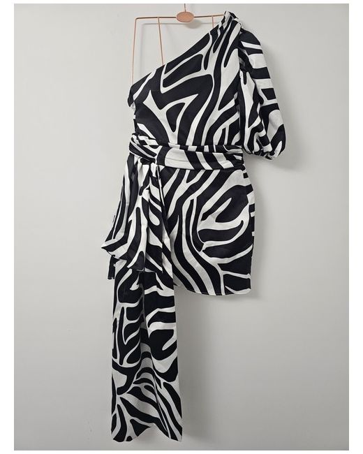 Cut from our premium heavyweight satin and designed with a flattering puff sleeve, one shoulder detail and with a two tiered drape detail. Forever Unique Zebra Print One Shoulder Mini Dress With Puff Sleeve and Drape Detail RRP £169.