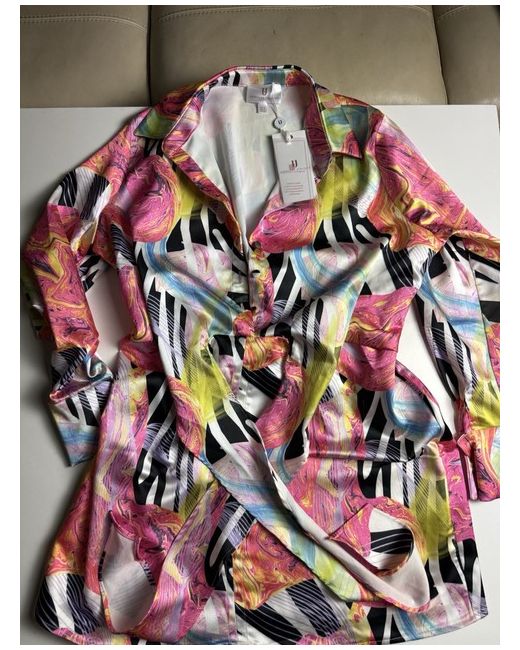 NEW forever unique Marble Zebra Print Satin Shirt Dress with Tie Front. SATIN SHIRT DRESS WITH TIE FRONT.