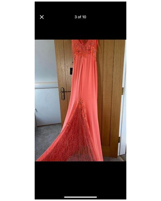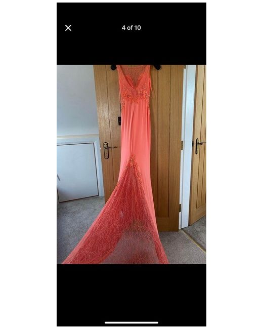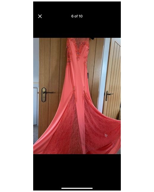 Beautiful formal dress Long train Size 8/10 Stunning dress with lovely detail Eye catching Worn once then professionally dry cleaned. Forever unique Cost over £250 new