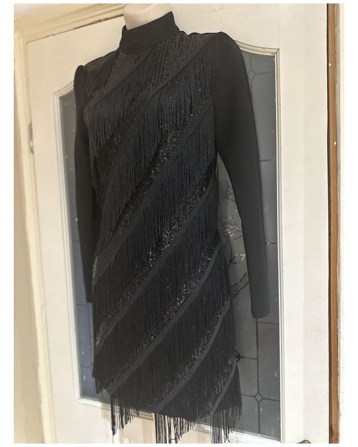 Women's Black Sequin Tassel Dress 8