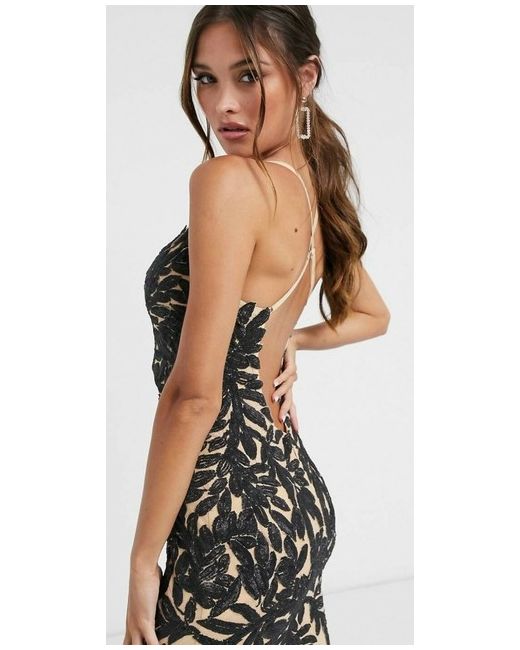 Women's Black Asos Blush Sequin Fishtail Formal Maxi Dress Gown 14 Bnwt