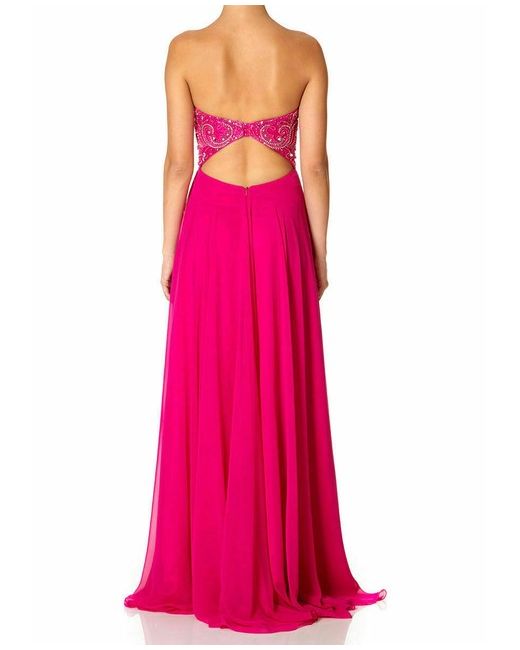 Forever Unique Polly. Black tie event?. This Forever Unique maxi dress has it all! Ooze glamour in this bright pink evening gown. 100% Polyester. Cut out detail to rear. Bead/jewel embellished bodice.