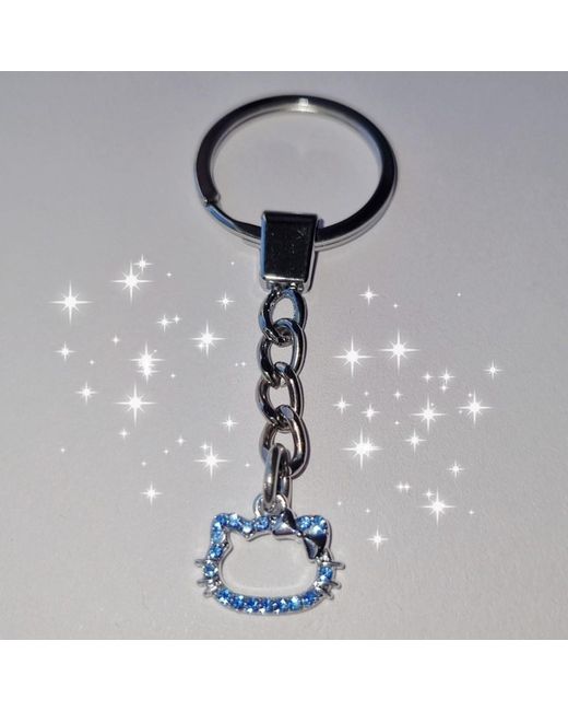♡BLUE HELLO KITTY KRYSTALICIOUS KEYRING♡. Accessorise with a touch of kawaii charm! This Blue Crystal Hello Kitty Stainless Steel Keyring is a delightful addition to your collection. ♡Hello Kitty Pendant♡.