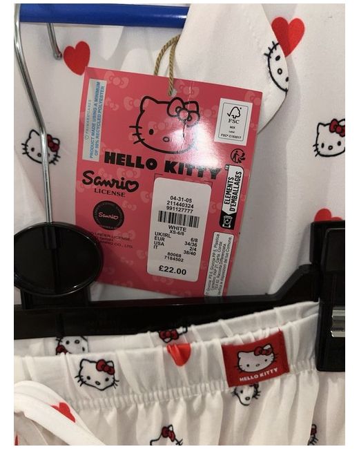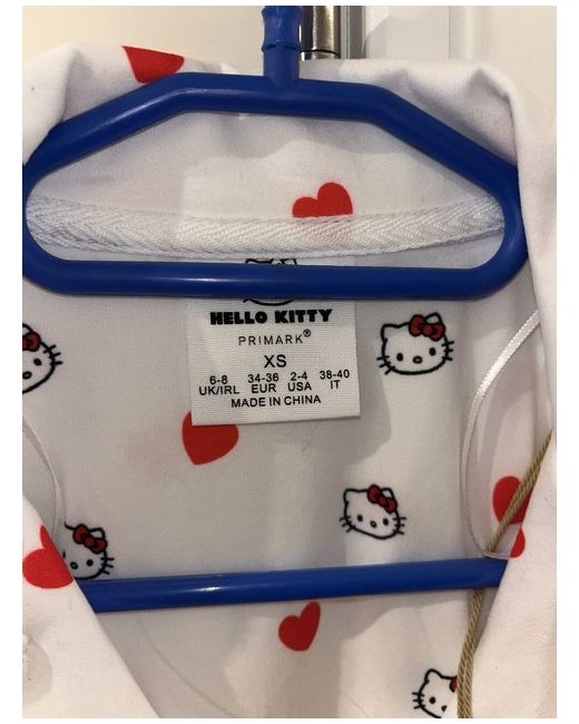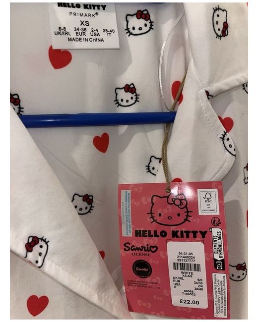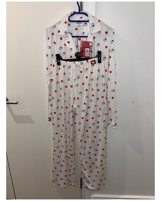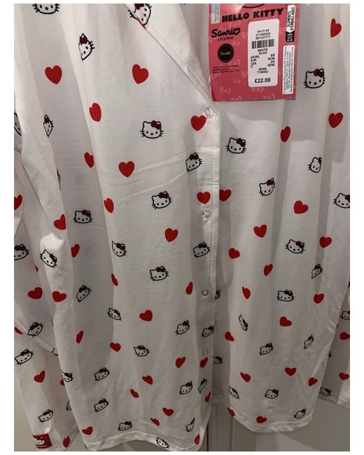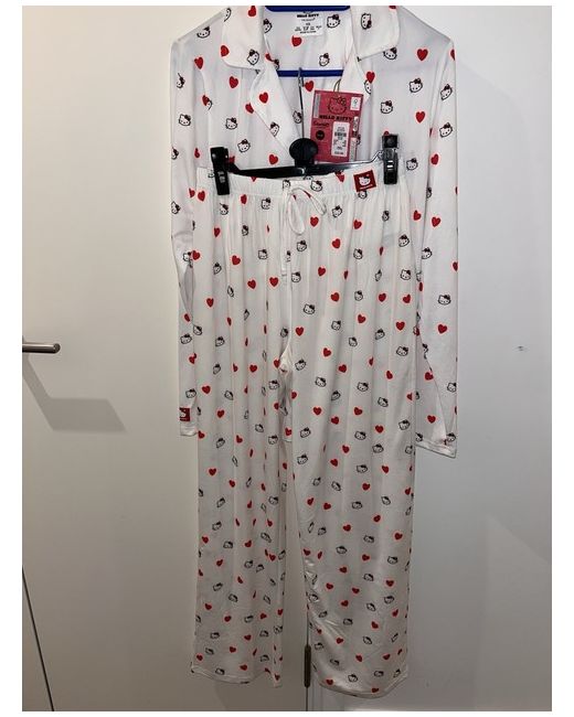 Embrace the charm and comfort of the Hello Kitty pyjama set, a delightful addition to your nighttime wardrobe. Crafted from soft, breathable cotton, this chemise-style ensemble boasts a pristine white colour that offers a classic and versatile look. Designed with a cozy long-sleeve top and matching bottoms, it's the perfect set for snuggling up in style. Tailored to fit a size XS, this pyjama set ensures a snug and flattering fit for women who appreciate a regular size type. The iconic Hello Kitty character adds a touch of whimsy and playful elegance to your sleepwear collection, making it an ideal choice for those who love to blend comfort with a dash of fun.