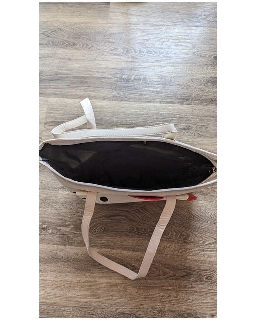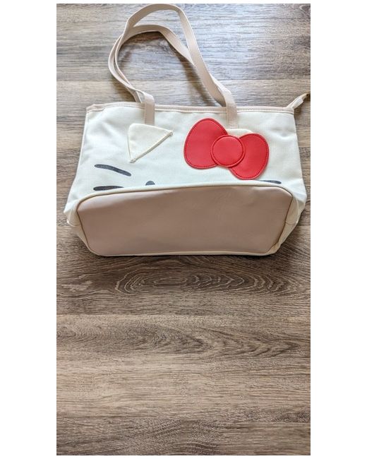 Hello kitty Canvas Tote Bag with red leather bow. Height (Top of Strap to bottom of bag) - 54cm. Leather strap and leather under at the bottom to stop it from getting dirty.