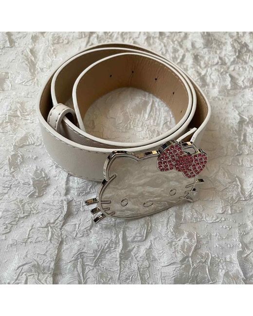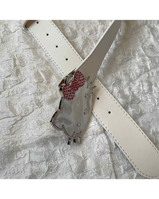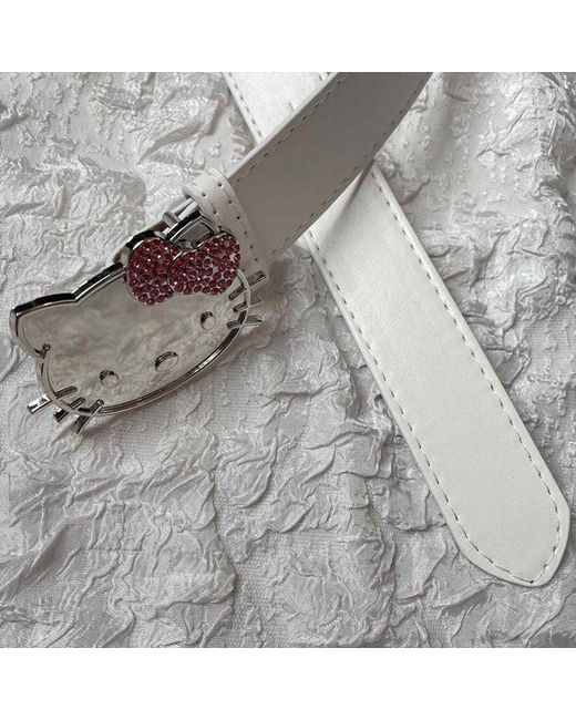 Hello Kitty PU Leather White Belt➽With a pink rhinestone bow decoration. 3.8 105cm(41”), fits waist size from 27”-37”. ➽Check out our page for so many more cute gems!